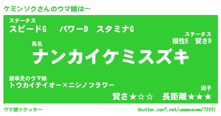 | 男性向けラノベタイトル風あだ名 | 『ケミンソクの憂鬱』 |
