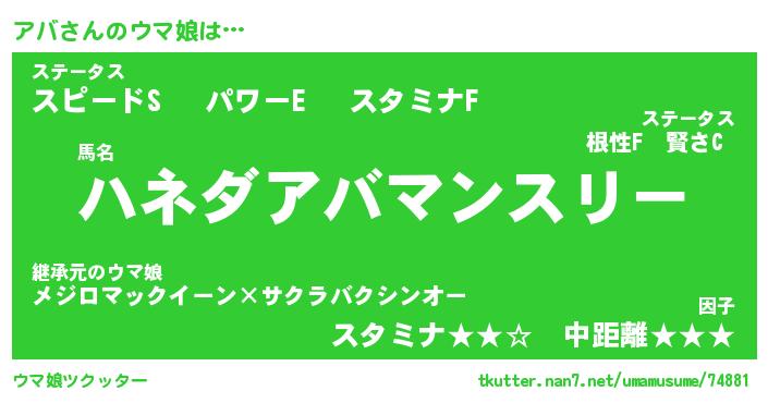 | ポケモン風あだ名 | 『アバチュウ』『アバダネ』『ヒアバ』 |