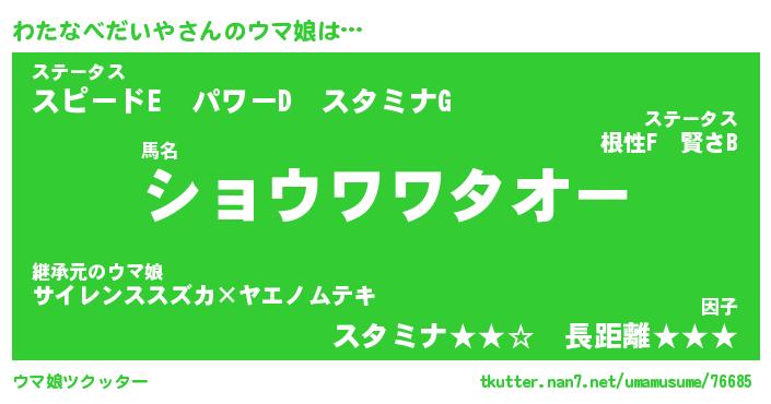 | ファンタジー風あだ名 | 『ワタフェル』『ファントムワタス』 |