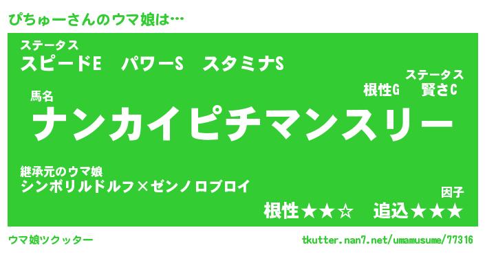 | 欧米人風あだ名 | 『マイケルぴちゅー』『ウサインぴちゅー』 |