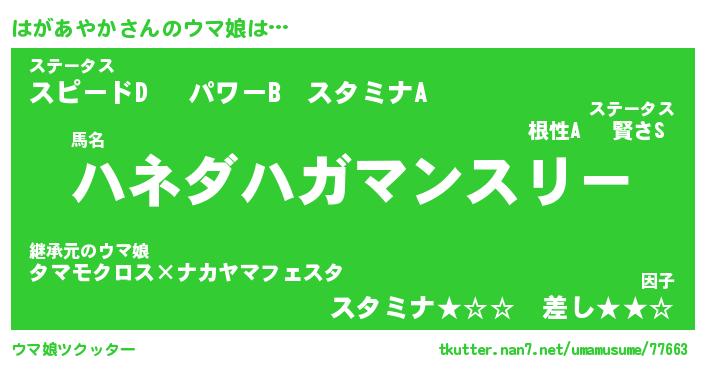| 自動車の名前っぽいあだ名 | 『ハガティマ』『ハスラー』『ハント』 |