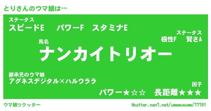 | ポケモン風あだ名 | 『トリチュウ』『トリダネ』『ヒトリ』 |
