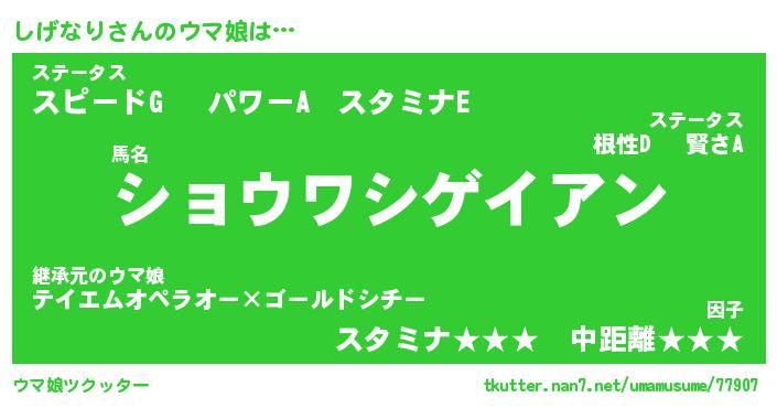 | 意味不明あだ名 | 『ペロリンしげなり』『永久保存しげなり』 |