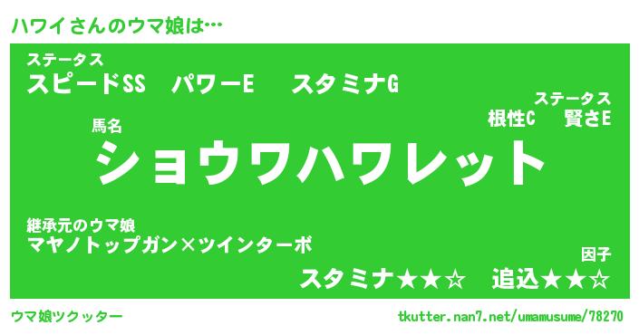| ポケモン風あだ名 | 『ハワチュウ』『ハワイダネ』 |
