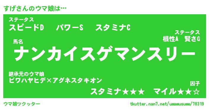 | ポケモン風あだ名 | 『スゲチュウ』『スゲダネ』『ヒスゲ』 |
