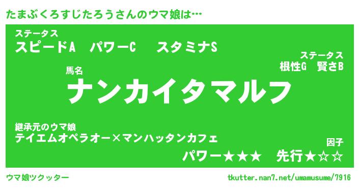 | ツイッター | たまぶくろすじたろうさんのツイッターID『masyumaro_star』 |