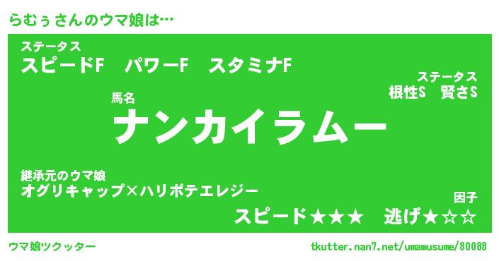| ポケモン風あだ名 | 『ラムチュウ』『ラムゥダネ』 |