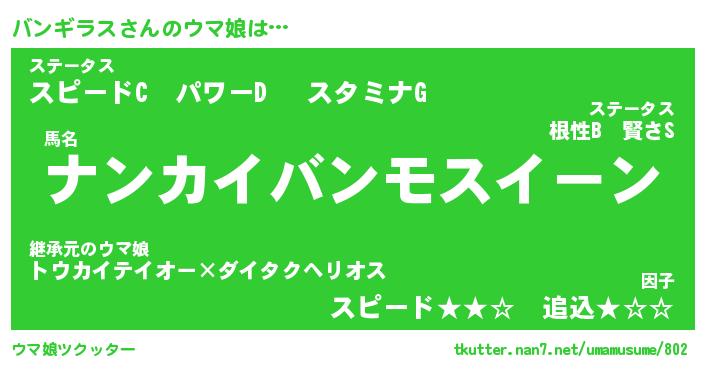 | ポケモン風あだ名 | 『バンチュウ』『バンギダネ』 |