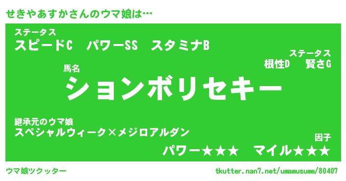 | ツイッター | せきやあすかさんのツイッターID『namakemono_kun』 |