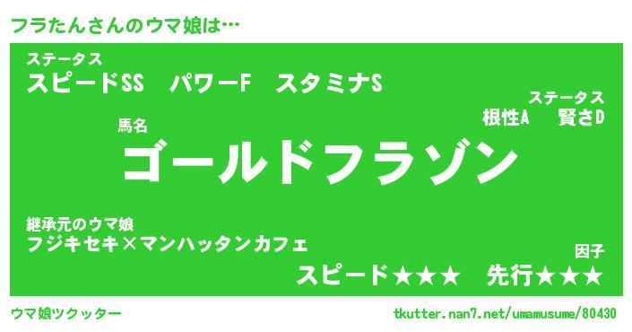 | 欧米人風あだ名 | 『マイケルフラたん』『ウサインフラたん』 |