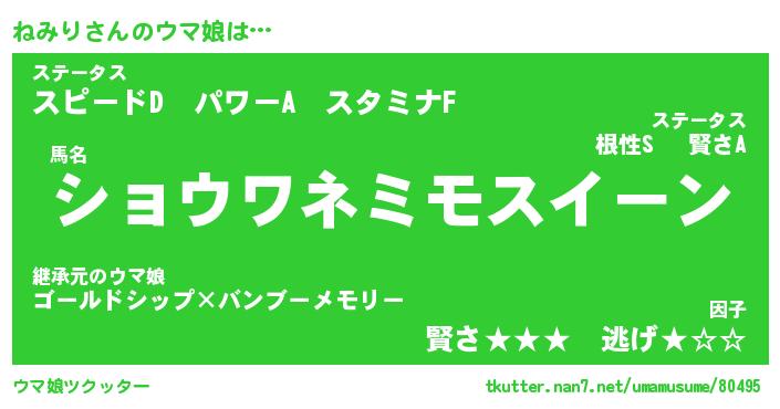 | ポケモン風あだ名 | 『ネミチュウ』『ネミリダネ』 |