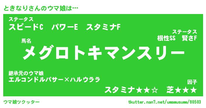 | 意味不明あだ名 | 『ペロリンときなり』『永久保存ときなり』 |
