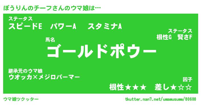 | ポケモン風あだ名 | 『ポウチュウ』『ポウリダネ』 |