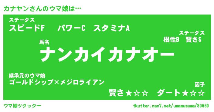 | ファンタジー風あだ名 | 『カナフェル』『エターナルカナヤンー』 |