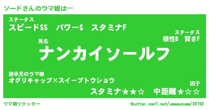 | 男性向けラノベタイトル風あだ名 | 『ソードの憂鬱』 |