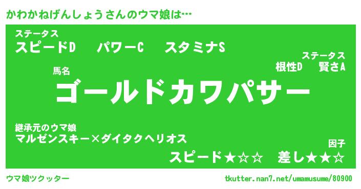 | ポケモン風あだ名 | 『カワチュウ』『カワカダネ』 |