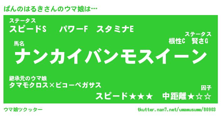 | ポケモン風あだ名 | 『バンチュウ』『バンノダネ』 |