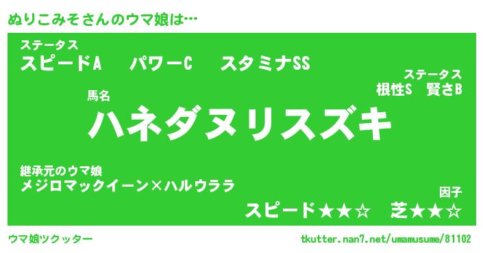 | 自動車の名前っぽいあだ名 | 『ヌリティマ』『ヌクア』『ヌント』 |