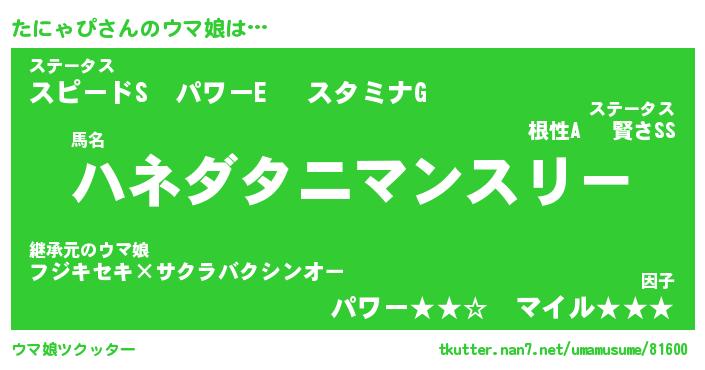 | ポケモン風あだ名 | 『タニチュウ』『タニャダネ』 |