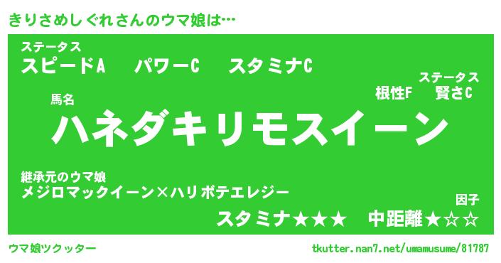 | 伝説のあだ名 | 『封印されしスナイパーきりさめしぐれ』 |