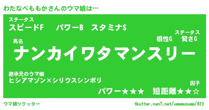 | 胡散臭い通販商品みたいなあだ名 | 『モテモテ間違いなし霊験あらたかなお札…その名も「わたなべももか」』 |
