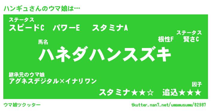 | ポケモン風あだ名 | 『ハンチュウ』『ハンギダネ』 |