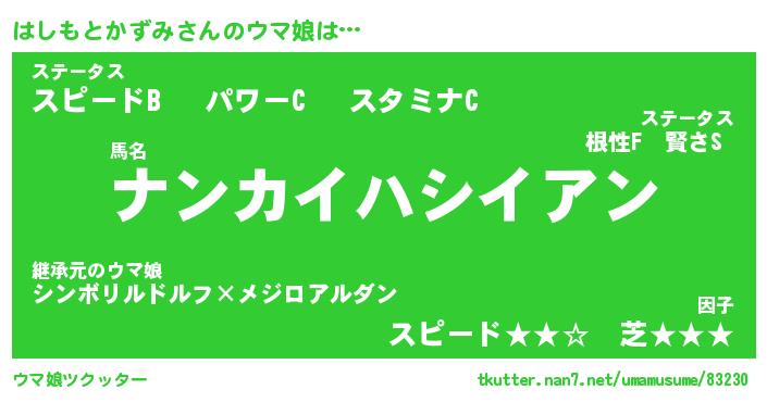 | 自動車の名前っぽいあだ名 | 『プリハシ』『ハクア』『デミハ』 |