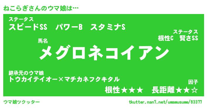 | 欧米人風あだ名 | 『マイケルねこらぎ』『ウサインねこらぎ』 |