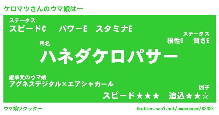 | 意味不明あだ名 | 『ペロリンケロマツ』『永久保存ケロマツ』 |