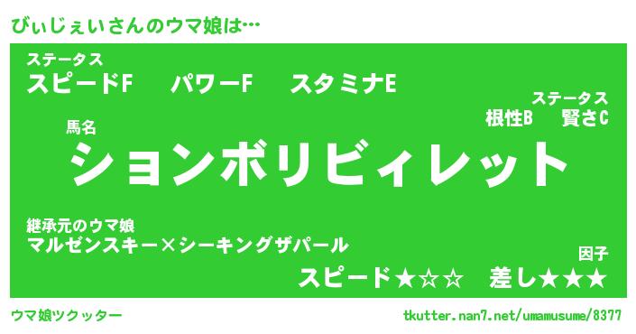 | 自動車の名前っぽいあだ名 | 『ビィティマ』『ビスラー』『ビント』 |