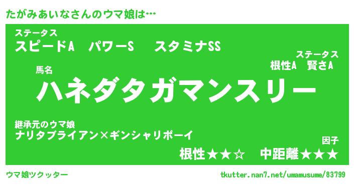 | ポケモン風あだ名 | 『タガチュウ』『タガミダネ』 |