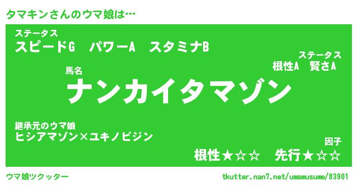 | ファンタジー風あだ名 | 『タマフェル』『エターナルタマキンー』 |