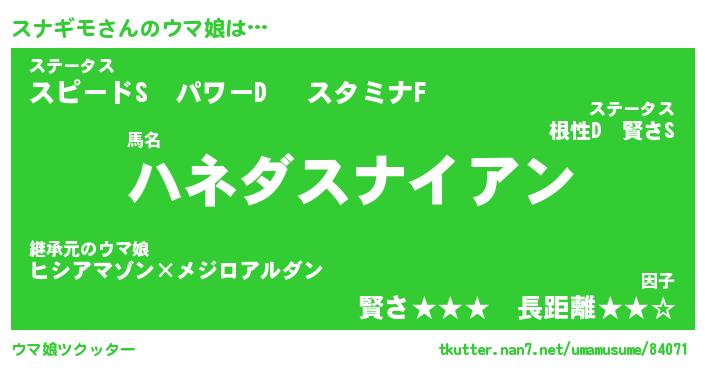 | 2回繰り返すあだ名 | 『スナスナ』『ススナナ』『ぐねぐね』 |
