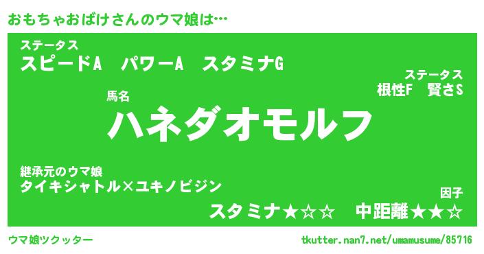 | 料理風あだ名 | 『ネギたっぷりおもちゃおばけの南蛮漬け』 |