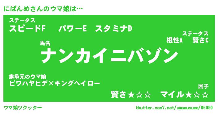 | ポケモン風あだ名 | 『ニバチュウ』『ニバンダネ』 |