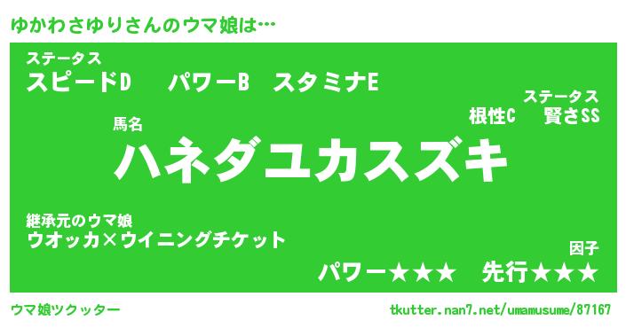 | 自動車の名前っぽいあだ名 | 『ユカティマ』『ユスラー』『ユント』 |