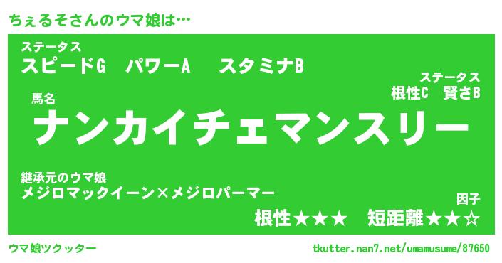 | 意味不明あだ名 | 『ペロリンちぇるそ』『永久保存ちぇるそ』 |