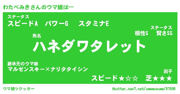 | 自動車の名前っぽいあだ名 | 『ワタティマ』『ワスラー』『ワント』 |