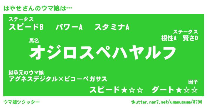 | ファンタジー風あだ名 | 『ハヤフェル』『エターナルハヤセー』 |