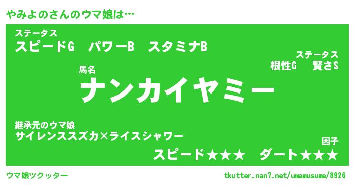 | 欧米人風あだ名 | 『マイケルやみよの』『ウサインやみよの』 |