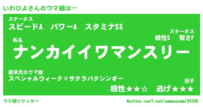 | 欧米人風あだ名 | 『マイケルいわひよ』『ウサインいわひよ』 |