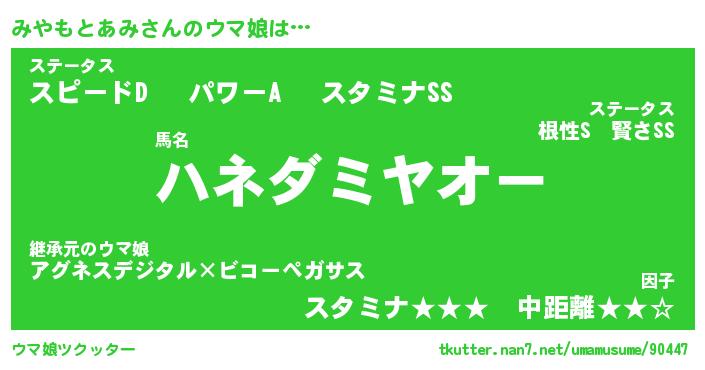 | 2回繰り返すあだ名 | 『みやみや』『みみやや』『ねばねば』 |