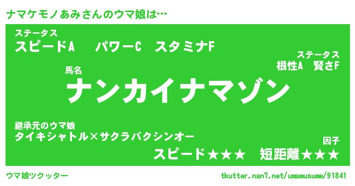 | ファンタジー風あだ名 | 『ナマフェル』『ファントムナマス』 |