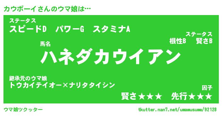 | ポケモン風あだ名 | 『カウチュウ』『カウボダネ』 |