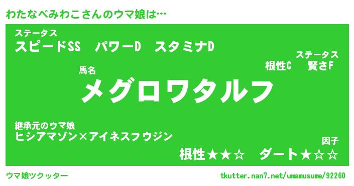 | ファンタジー風あだ名 | 『ワタフェル』『ファントムワタス』 |