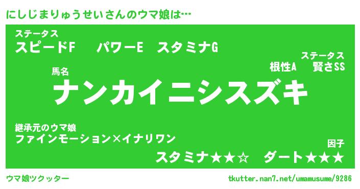 | ポケモン風あだ名 | 『ニシチュウ』『ニシジダネ』 |