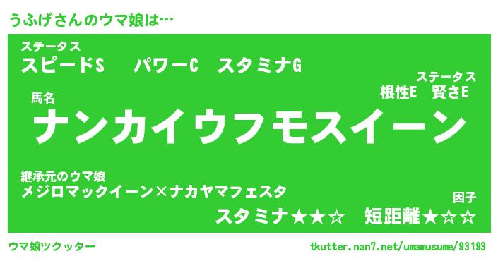 | ポケモン風あだ名 | 『ウフチュウ』『ウフゲダネ』 |