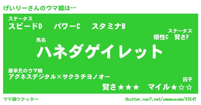 | 意味不明あだ名 | 『ペロリンげいりー』『永久保存げいりー』 |