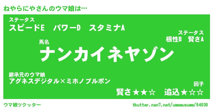 | 伝説のあだ名 | 『不死鳥のスナイパーねやらにや』 |