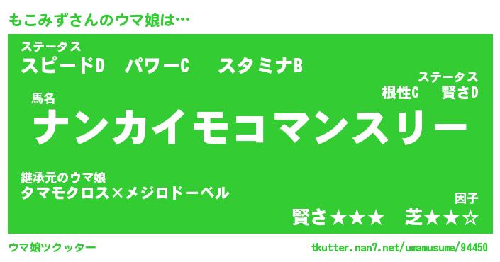 | 意味不明あだ名 | 『ペロリンもこみず』『永久保存もこみず』 |
